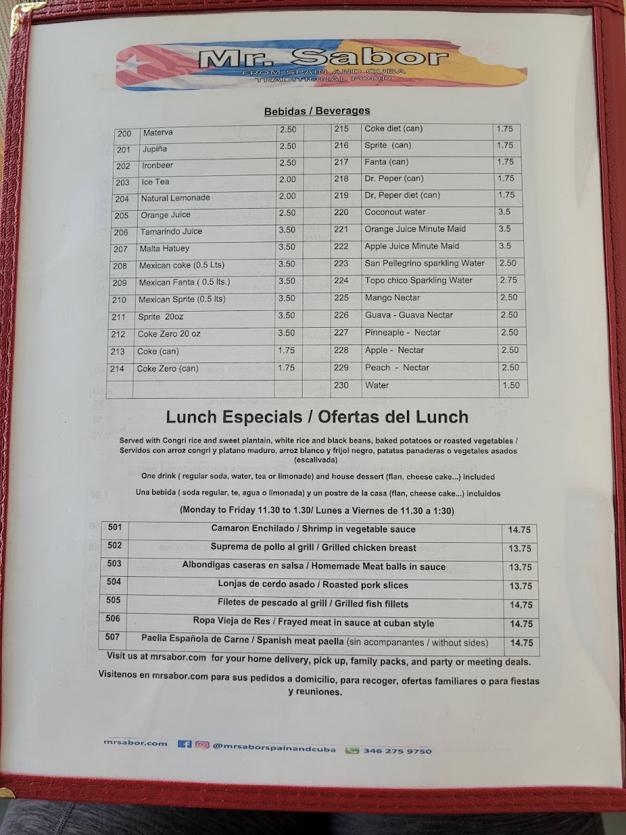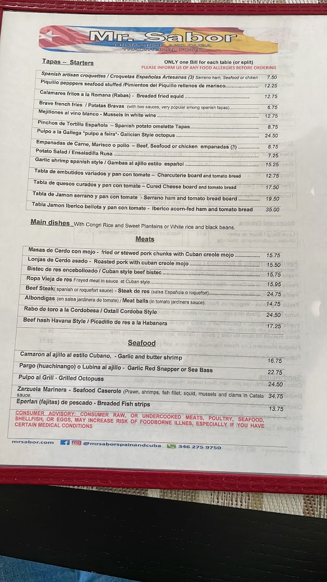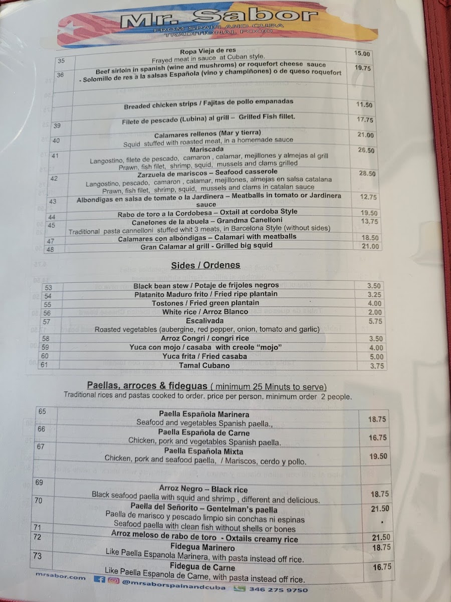 Welcome to Mr Sabor, where the vibrant flavors of Spanish and Cuban cuisines come to life in Houston! Located at 1000 Telephone Rd, this gem offers an inviting atmosphere paired with exceptional service. The menu showcases a variety of dishes, highlighting their commitment to authenticity and quality.